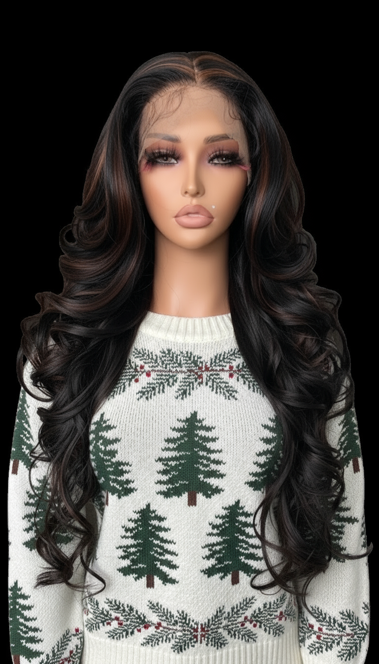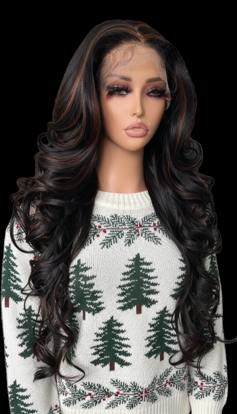 Step into effortless elegance with our pre-styled lace front wig, crafted for confidence and convenience. This long, wavy masterpiece features a dark brown hue with a soft, natural wave pattern that flows beautifully.