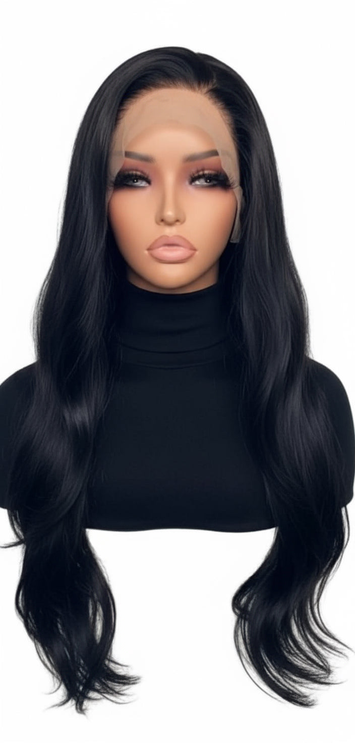 Step into effortless elegance with our pre-styled lace front wig, crafted for confidence and convenience. This long, wavy masterpiece features a dark brown hue with a soft, natural wave pattern that flows beautifully.
